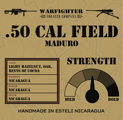 The .50 Cal Field Maduro is the boldest cigar of the Field line. It has spice but also hints of coffee and cocoa. It finishes milder on the palate ...