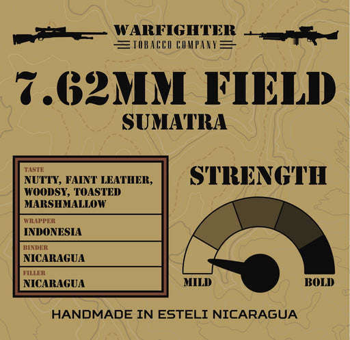 The 7.62MM Field Sumatra is your new "EDC" (every day cigar). Whether you smoke a cigar a day or a cigar a year, this cigar is just right. This cig...