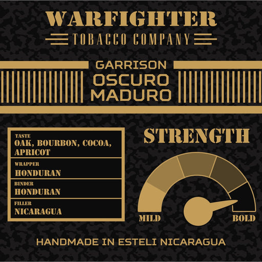 The Garrison Oscuro Maduro is a dark and bold Maduro. It has notes of oak, bourbon, cocoa and apricot. You can pick up some sweetness that is subtl...